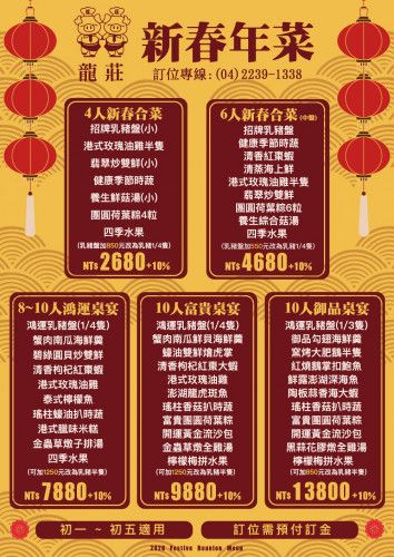 🌸龍莊2026年新春年菜 出爐了🤩 ✨先提供給line好友預訂。 💟需預付訂金5